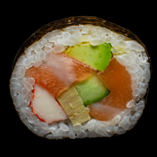 Assortiment van 32 maki: zalm, komkommer, avocado, surimi.