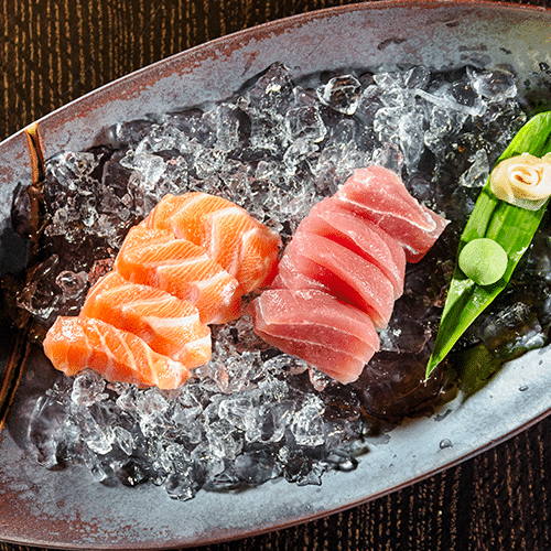 Assortiment van dagverse, in plakjes gesneden rauwe vis (20 st.).