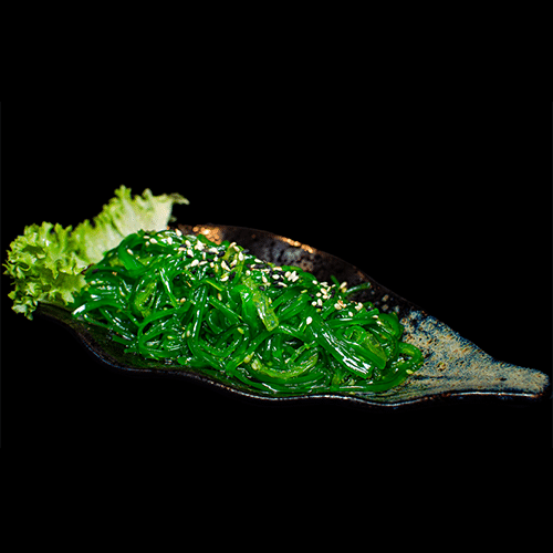 Salade met avocado, edamame, wakame, sla en sesamdressing.